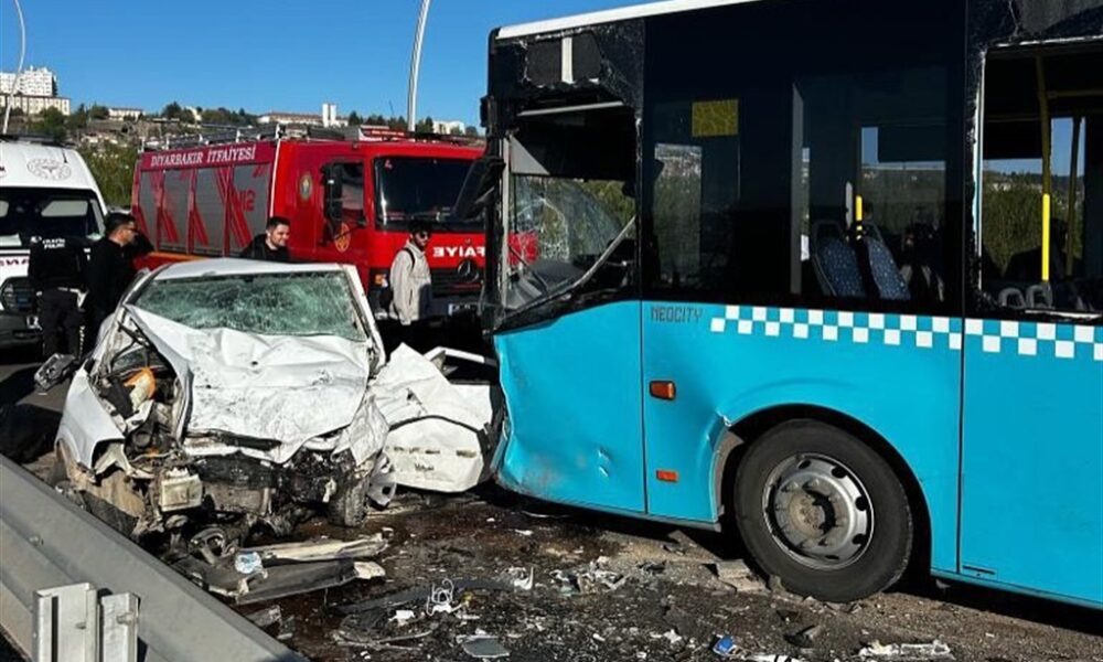 • Diyarbakır’da 17 Nisan’da Emin Ateş’in öldüğü 4 kişinin yaralandığı otomobille belediye otobüsünün kafa kafaya çarpıştığı kaza güvenlik kamerasına yansıdı. Fotoğraf: Diyarbakır,(DHA)