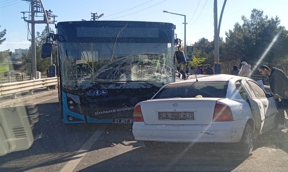 • Diyarbakır’da 17 Nisan’da Emin Ateş’in (ortada) öldüğü 4 kişinin yaralandığı otomobille belediye otobüsünün kafa kafaya çarpıştığı kaza güvenlik kamerasına yansıdı. Fotoğraf: Diyarbakır,(DHA)