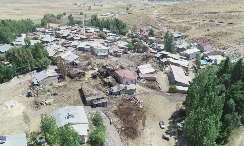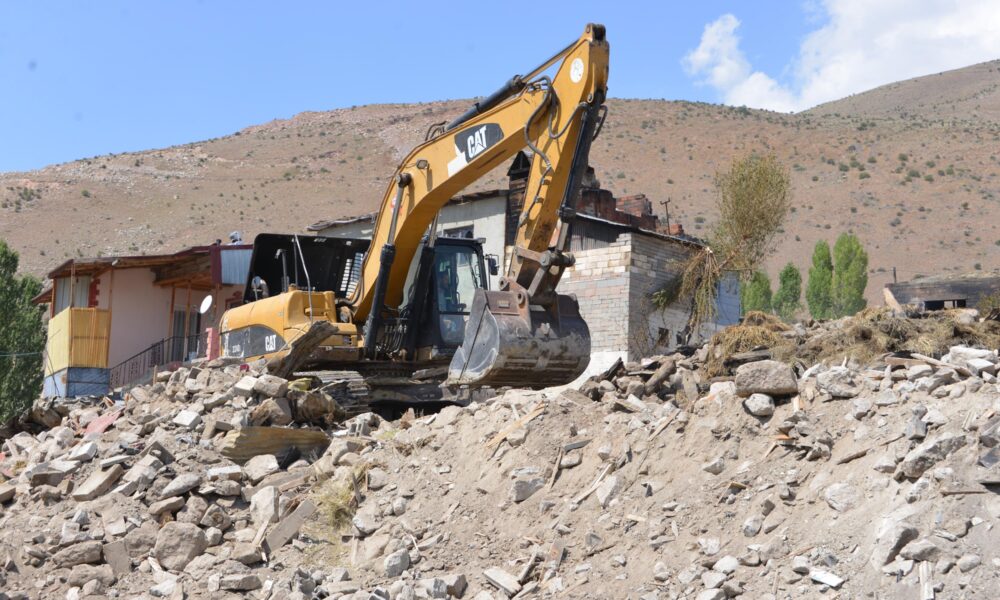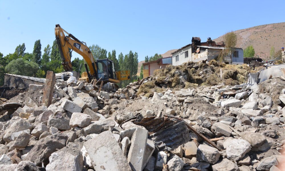 • Yakutiye ilçesi kırsal Kırmızıtaş Mahallesi’nde çıkan yangında 10 ev, 17 ahır yanarken, 16 büyükbaş öldü. Hasar tespit çalışmalarının yapıldığı mahallede iş makineleri temizlik yapıyor. Fotoğraf: Salih TEKİN/Erzurum, (DHA)