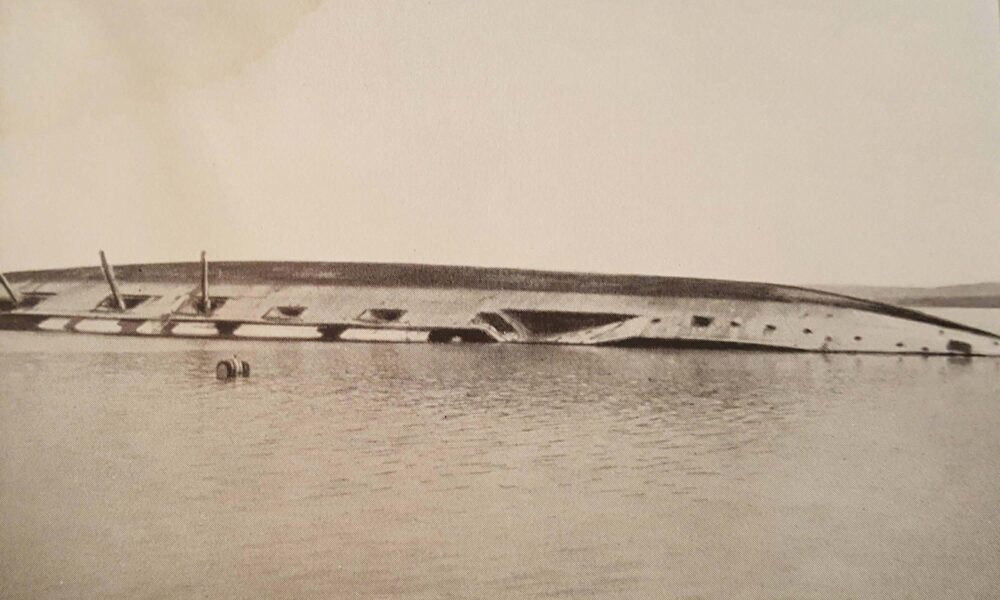 • Mesudiye Zırhlısının alabora olmuş hali (Fotoğrafta). Fotoğraf: Çanakkale, (DHA)