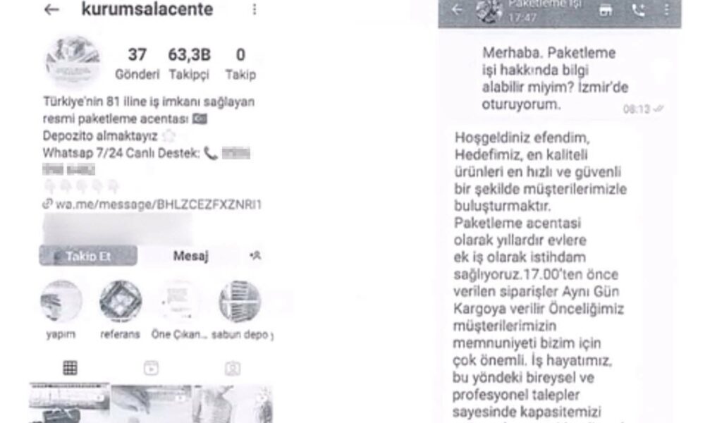 İzmir Cumhuriyet Başsavcılığı koordinesinde, İzmir Emniyet Müdürlüğü Siber Suçlarla Mücadele Şube Müdürlüğü tarafından yürütülen nitelikli dolandırıcılık soruşturması kapsamında, şüphelilerin sosyal medya ve online internet siteleri üzerinden evde ek iş, evde paketleme işi ilanları vererek dolandırıcılık yaptıkları tespit edildi. Şüphelilerin, kapora, sigorta, veri ücreti gibi çeşitli isimler adı altında para talep edip, işlemlerin legal olduğuna inandırmak adına sahte olarak düzenledikleri resmi kurum logosu olan belgeleri ve sahte şirket isimlerini dolandırıcılık eylemlerinde kullandıkları ve bu eylemlerde hedef kitle olarak kendilerine genellikle ev kadınlarını seçtikleri belirlendi.