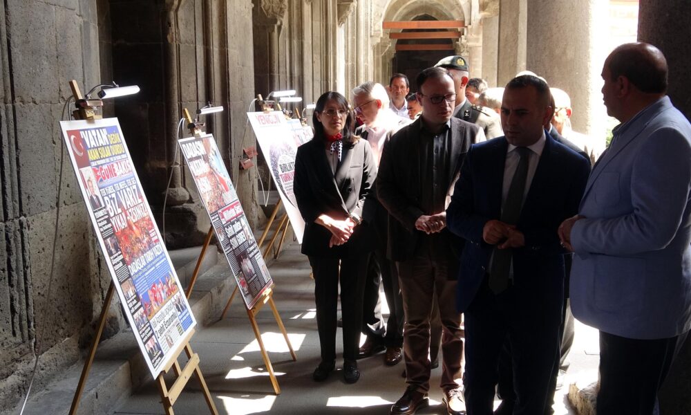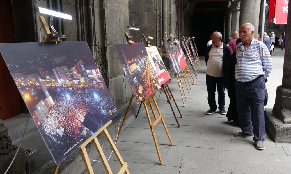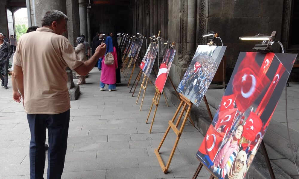 Erzurum Valiliği, Büyükşehir Belediyesi, kaymakamlıklar ve çeşitli kurumlar tarafından 15 Temmuz darbe girişiminin yıl dönümü sebebiyle Çifte Minareli Medrese’de resim ve fotoğraf sergisi düzenlendi. Darbe girişiminin olduğu gün yaşananları anlatan sergide Erzurumun şehitleri ve gazilerinin de fotoğrafları yer aldı. Vali Yardımcısı Mustafa Berk Çelik, Garnizon Komutan Vekili Topçu Albay İlkay Günay, Büyükşehir Belediye Başkan vekili Mehmet Akarsu ile davetliler, resim ve fotoğraflar hakkında bilgi aldı.