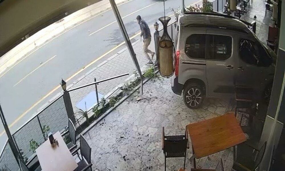 15 yaşındaki sürücü, otomobille restorana daldı; o anlar kamerada