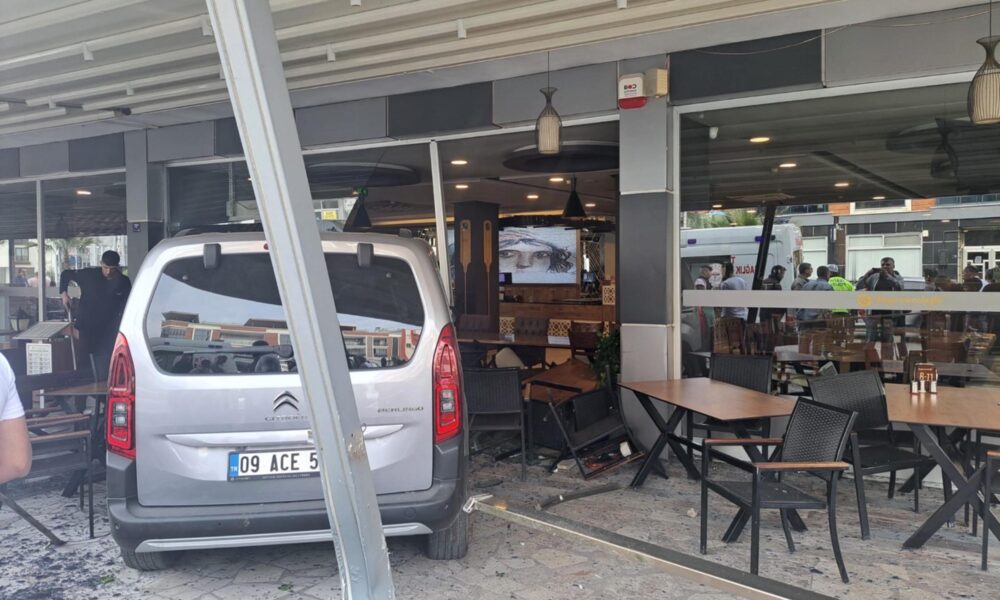 • Aydın'ın Efeler ilçesinde E.E.C. (15) kullandığı otomobil, önce başka otomobile çarptı ardından restorana daldı. O anlar, iş yerinin güvenlik kameralarına yansıdı. Fotoğraf: Aydın,(DHA)