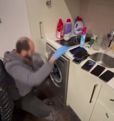 Öte yandan, polisin operasyonu sırasında çekilen görüntülerde, çok sayıda cep telefonunun çamaşır makinesinin içine gizlenmiş olarak ele geçirildiği görüldü.