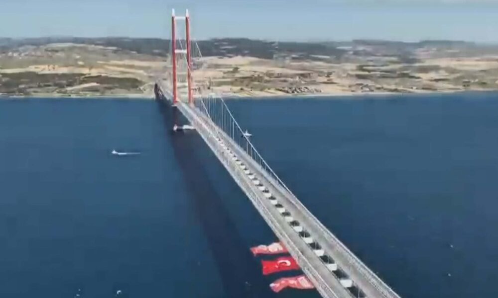 1915 Çanakkale Köprüsü’ne Türk bayrağı asıldı