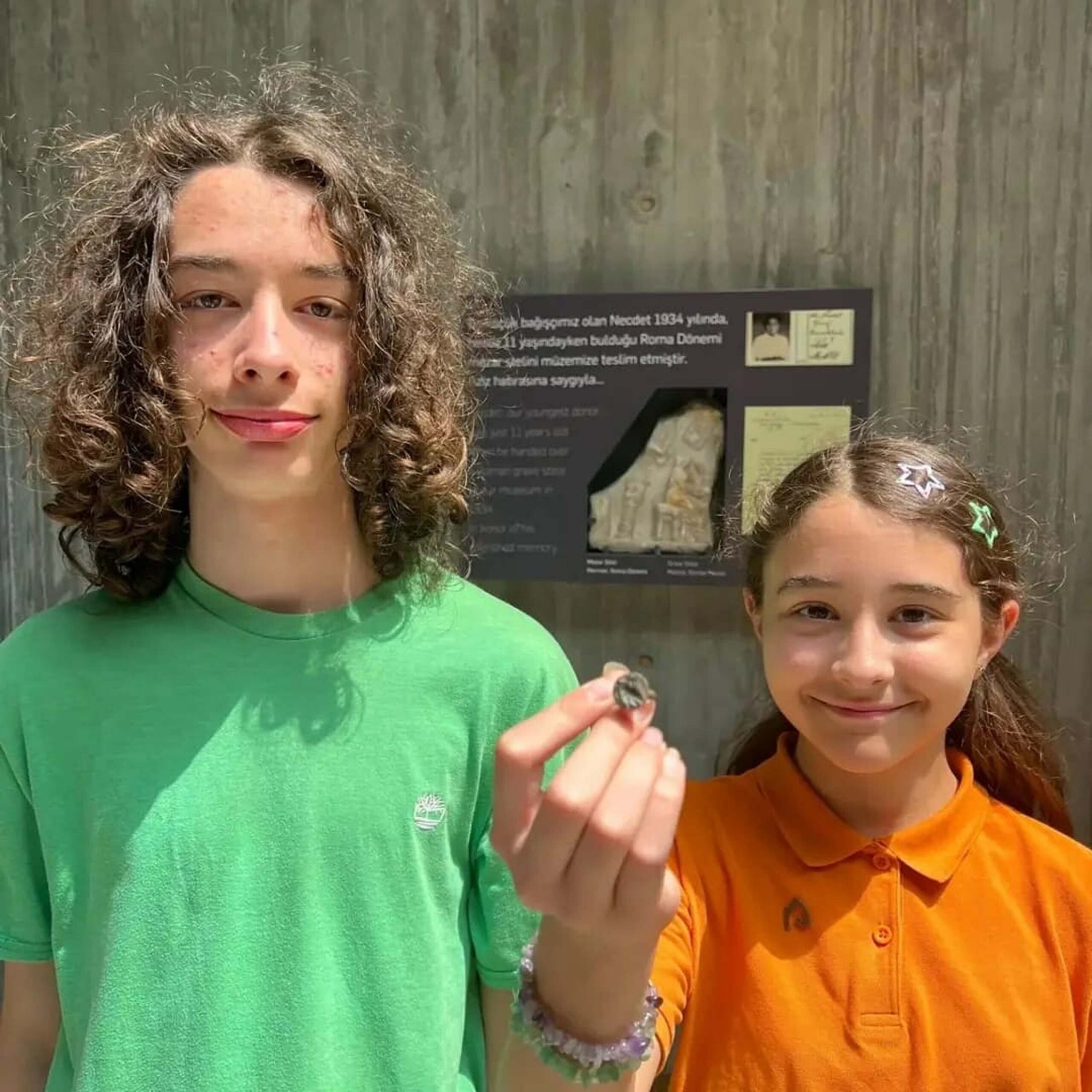“Troya Müzesi ailesi olarak bugün çok anlamlı bir bağışı gururla duyuruyoruz. Ayvacık, Demirci köyünden iki pırıl pırıl kardeş, 10 yaşındaki Ümmühan Hatun Ortaokulu öğrencisi Aden Dayangaç ve 14 yaşındaki Ayvacık Fen Lisesi öğrencisi Doran Dayangaç, müzemize Doğu Roma Dönemine ait bir yüzük mühür bağışladı. Mühür yüzüğün üzerinde, Petrusun Hz. İsayı inkarına gönderme yapan horoz figürü bulunmaktadır. Bu anlamlı hikaye, Adenin geçtiğimiz yıl müzemizde gerçekleşen Takeover Day (Çocuklar Müzeyi Ele Geçirdi) projesinde 1 günlüğüne Troya Müzesi ailesine katılmasıyla başladı. Evlerinin yakınlarında bulduğu bu ilginç nesnenin tarihi bir eser olabileceği şüphesiyle abisi Doran ile paylaşan Aden, abisinin de desteğiyle bu kıymetli hediyeyi müzemize ulaştırmaya karar verdi. Aden ve Doranın bu duyarlı ve örnek davranışları, tarihe sahip çıkma bilincinin en güzel göstergesi. Güzel yüreklerinde taşıdıkları bu büyük miras sevgisiyle bizleri derinden etkilediler. Sevgili Aden ve Doran, bu anlamlı bağışınız için sizlere sonsuz teşekkürlerimizi sunuyoruz. Sizler gibi bilinçli ve duyarlı gençlerin varlığı, geleceğe olan inancımızı daha da güçlendiriyor.”