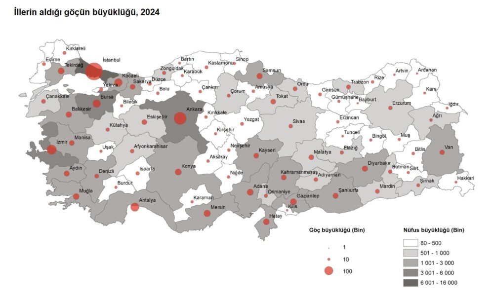 2024’te 2 milyon 682 bin kişi, iller arasında göç etti
