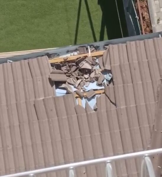 • Adana'da eşi tarafından balkondan atılan Dilek Gökgül'ün düştüğü sundurma. Fotoğraf: Serhat GÜLER/Adana,(DHA)