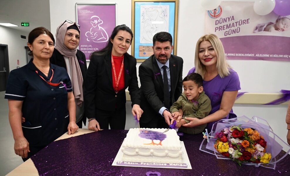 Daha sonra Dünya Prematüre Günü için hazırlanan pasta, Başhekim Uzman Doktor Mürsel Koçer, Oğuzhan Aydın ve ailesi ile doktoru ve yenidoğan ekibinin katılımıyla kesildi.