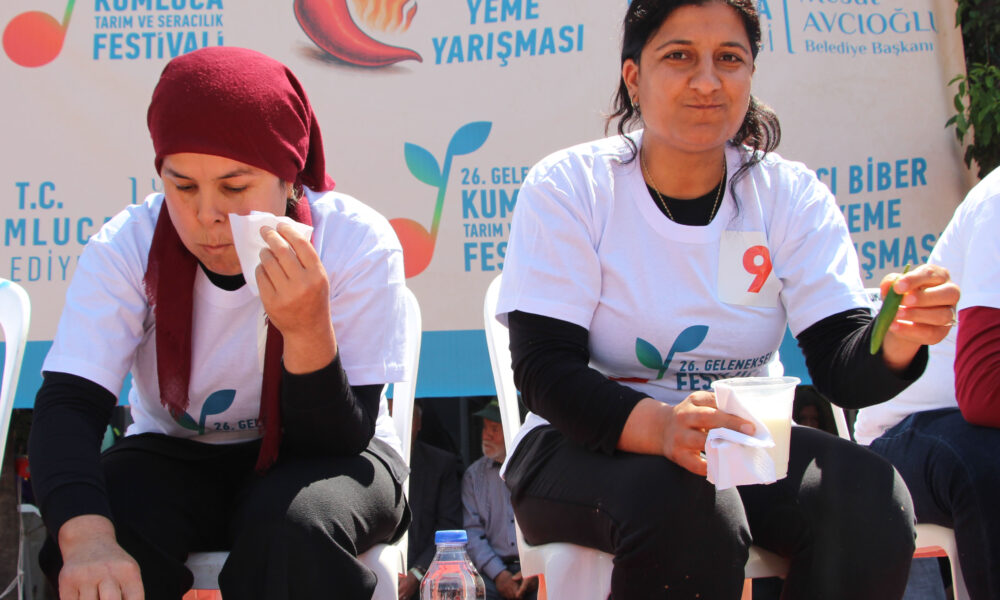 Cumhuriyet Meydanında düzenlenen yarışmaya 30 kişi katıldı. Kaymakam Bahadır Güneş ve Belediye Başkanı Mesut Avcıoğlu ile siyasi parti temsilcileri, daire amirleri, STK temsilcileri, mahalle muhtarları ve çok sayıda kişi yarışmayı izledi. Jüri üyeliğini Tarım ve Orman İlçe Müdürü İsa Akşit, Kumluca Belediye Başkan Yardımcısı Erhan Kökcü ve Kumluca Ziraat Odası Başkanı Hidayet Kökcenin yaptığı yarışmada katılımcılar karton ambalajın içinde aldıkları biberleri önce jüri üyelerinin nezaretinde tarttı ve yarışma standına geçti. Başlama düdüğüyle birlikte yarışmacılar birinci olmak için ter döktü. Acı biberleri yemekte zorlanan bazı yarışmacılar acıyı hafifletmek için domates yiyip, ayran ve su içti.