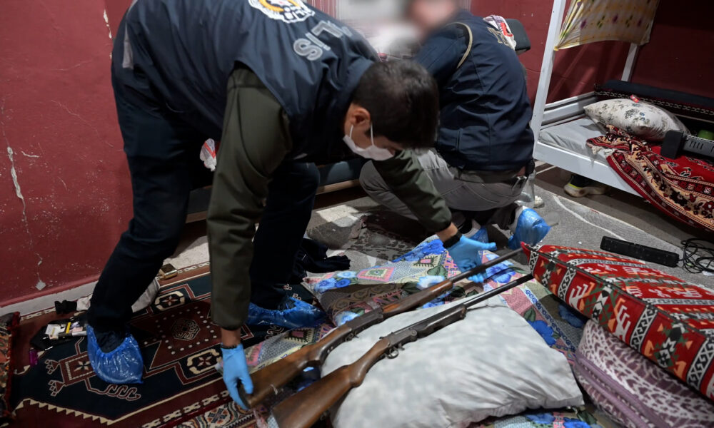 Adıyaman Emniyet Müdürlüğü’ne bağlı Asayiş ve İstihbarat şubeleri müdürlükleri tarafından yapılan fiziki ve teknik çalışma sonrası, Adıyaman merkezli olmak üzere Malatya ve Şanlıurfa’da 34 şüpheliye yönelik operasyon düzenlendi. Piyasaya örgütlü olarak silah temin ettiği, silah satışı yaptığı ve silah satışına aracılık eyleminde bulunduğu belirlenen E.U. liderliğindeki suç örgütüne ait 27 adres, 3 iş yeri ve 20 araç arandı. Aramalarda; 40 ruhsatsız av tüfeği, 26 kayıtsız kurusıkı tabanca, 16 ruhsatsız tabanca, 434 adet fişek, 48 av kartuşu, 7 bıçak, 2 torna makinesi, 1 kılıç ve 633 paket kaçak sigara ele geçirilip muhafaza altına alındı. Gözaltına alınan 34 şüpheli ise sorgulanmak üzere emniyete götürüldü. Olayla ilgili soruşturma sürüyor.