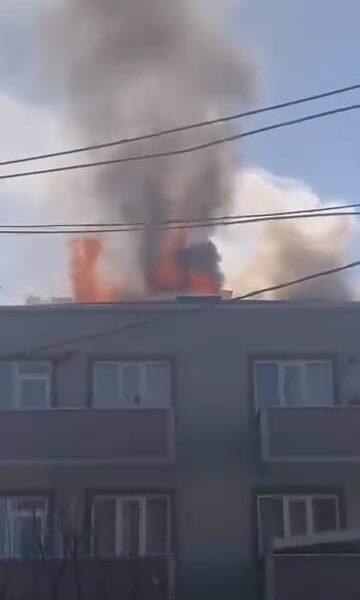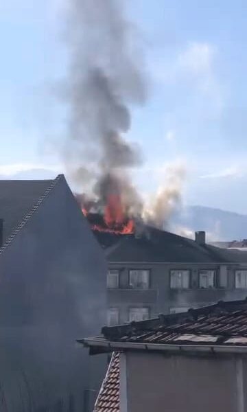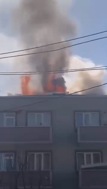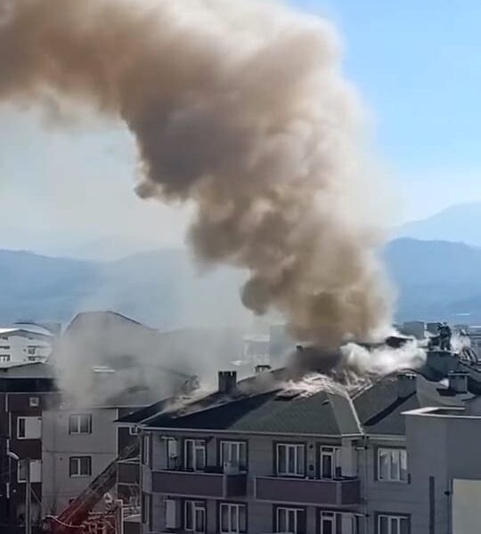 3 katlı apartmanın çatısı alev alev yandı