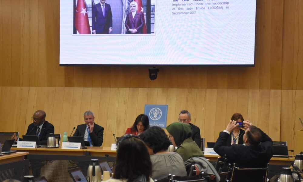 Türkiyenin Roma Büyükelçiliği ve BM Gıda ve Tarım Örgütü (FAO) iş birliğinde Uluslararası Sıfır Atık Günü başlıklı panel düzenlendi. FAOnun Romadaki Genel Merkezinde düzenlenen panele, Roma Büyükelçisi Elif Çomoğlu Ülgen, FAO Gıda Sistemleri ve Gıda Güvenliği Bölümü Direktör Yardımcısı Divine Nganje Njie, FAO İklim Değişikliği-Biyoçeşitlilik-Çevre Bölümü Direktör Yardımcısı Piedad Martin, Dünya Gıda Programı (WFP) Çevresel Sürdürülebilirlik Yöneticisi Andy Cole, Uluslararası Tarımsal Kalkınma Fonu (IFAD) Çevre, İklim, Cinsiyet ve Sosyal Katılım Bölümü Direktörü Juan Carlos Mendoza katıldı. Büyükelçi Ülgen, “Emine Erdoğanın himayesinde Sıfır Atık Hareketi ulusal bir girişimden, gerçek anlamda küresel bir çabaya dönüştü” diyerek, bu girişimle daha temiz ve daha kaynak verimli dünyaya katkıda bulunan politikaların ve projelerin teşvik edilmesinde önemli ilerlemeler kaydedildiğini dile getirdi.