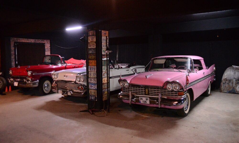30 yıl yaşadığı Amerika’dan getirdiği klasik otomobillere özenle bakıyor; garaj, müzeyi andırıyor