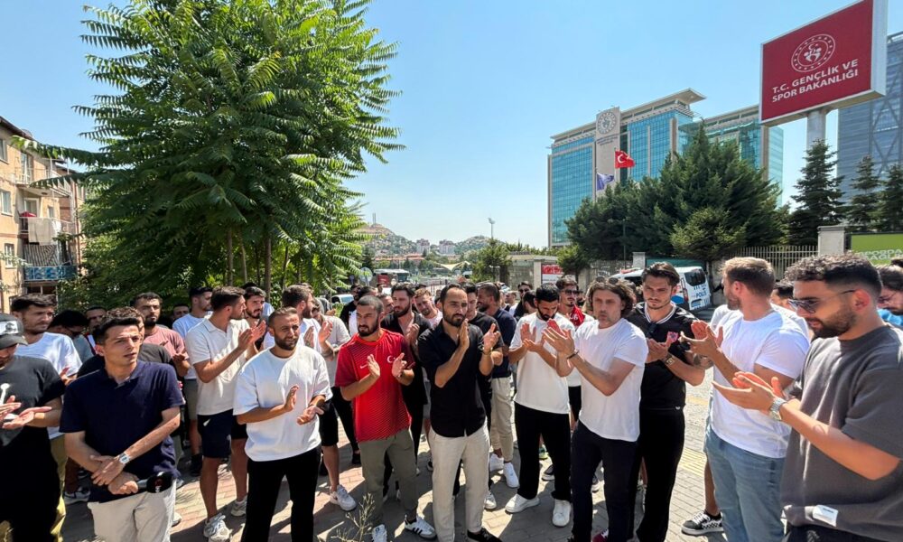 3’üncü Lig futbolcularından, Gençlik ve Spor Bakanlığı önünde basın açıklaması