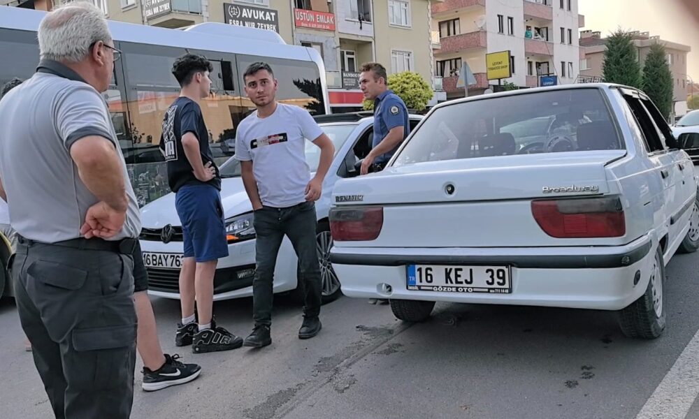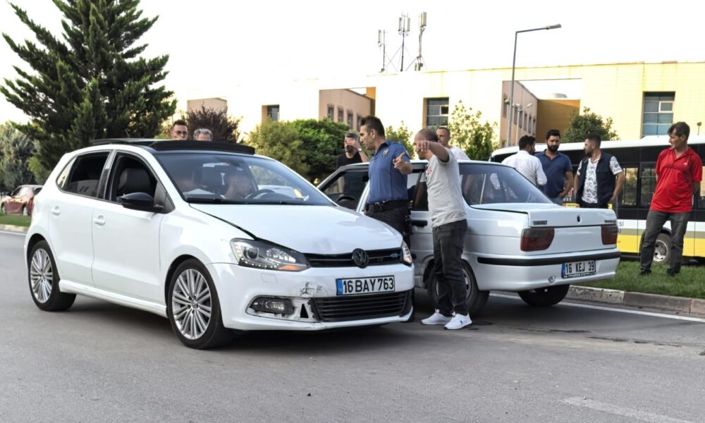 Kaza, akşam saatlerinde Turgutalp Mahallesi Mimar Sinan Bulvarı üzerinde meydana geldi. Bulvar üzerinde seyir halinde olan Yusuf K. yönetimindeki 16 BAY 763 plakalı otomobile, ara sokaktan aniden çıkan Emre C. yönetimindeki 16 KEJ 39 plakalı otomobil çarptı. Çarpışmanın etkisiyle araçlar savrulurken, sürücüler hafif yaralandı.