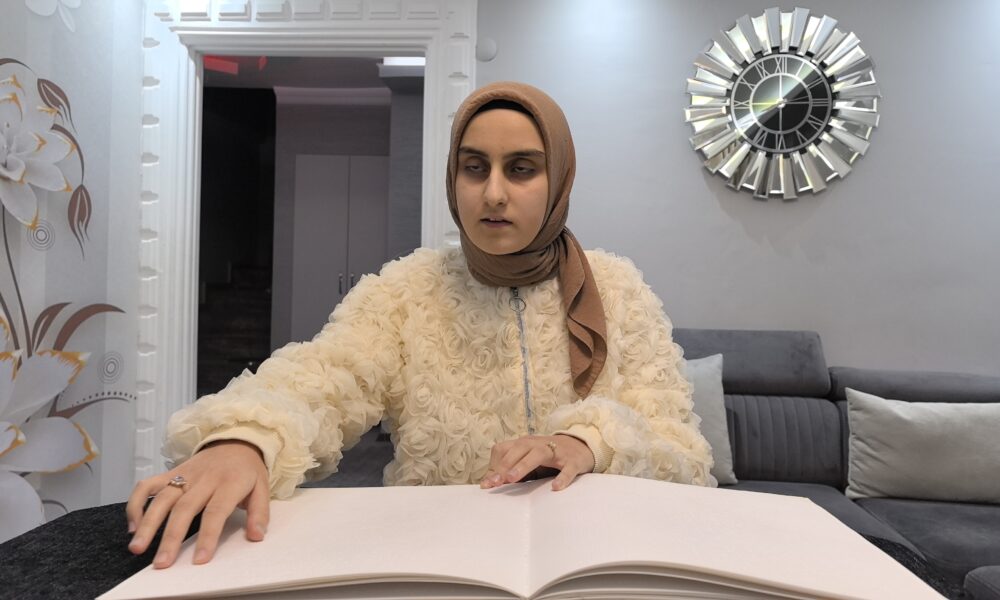 • Bursa’da yaşayan görme engelli Medine Mevlütoğlu (16), Braille alfabesini öğrenerek, İnegöl Merkez Yatılı Kız Kur’an Kursu’nda 2023 yılında başladığı hafızlık eğitimini 1,5 yılda tamamladı. Fotoğraf: Yavuz YILMAZ / İnegöl (Bursa), (DHA)