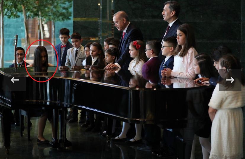 • 019'da 23 Nisan programında Cumhurbaşkanı Recep Tayyip Erdoğan tarafından kabul edilen öğrenciler arasında olduğunu, orada piyano çaldığını söyleyen Medine, hafızlık belgesini Cumhurbaşkanının elinden almak istiyor Fotoğraf: Arşiv / Ankara,(DHA)