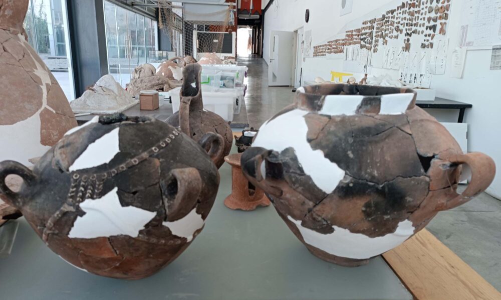 • İzmir'in Bornova ilçesindeki Yassıtepe Höyüğü'nde sürdürülen arkeoloji çalışmalarında 5 bin yıl öncesine tarihlenen gerdanlık kabartmalı özel kaplar bulundu. Fotoğraf: Kadir ÖZEN/İzmir,(DHA)