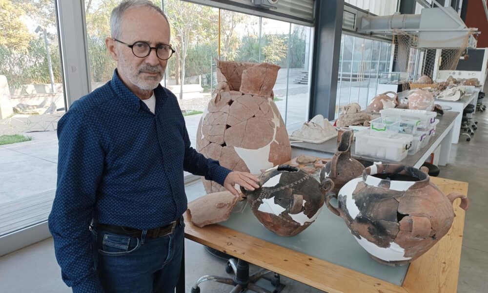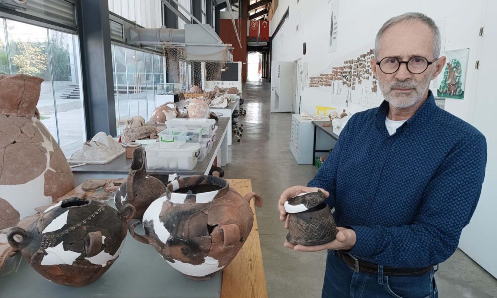 • İzmir'in Bornova ilçesindeki Yassıtepe Höyüğü'nde sürdürülen arkeoloji çalışmalarında 5 bin yıl öncesine tarihlenen gerdanlık kabartmalı özel kaplar bulundu. Zafer Derin (Fotoğrafta). Fotoğraf: Kadir ÖZEN/İzmir,(DHA)