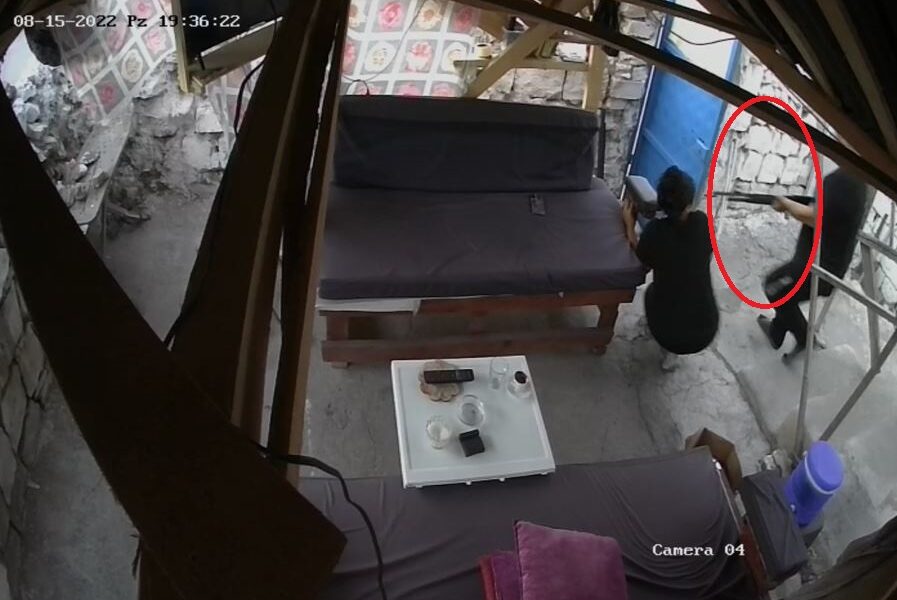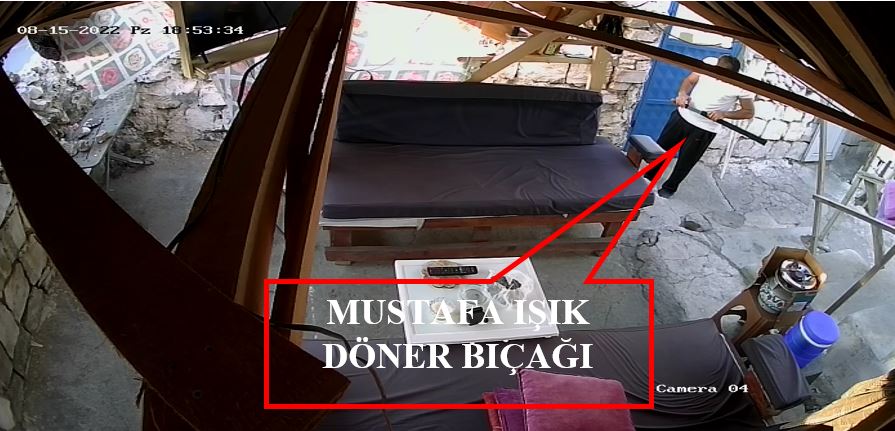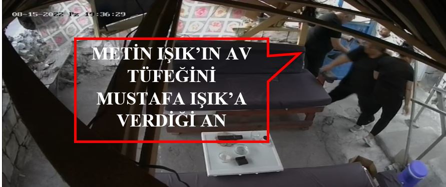 Yine görüntülere göre; olaydan önce Mustafa Işıkın evlerinin avlusuna girerek kapı arkasındaki döner bıçağını kılıfından yarıya kadar çıkarıp bir süre bakıp tekrar bıraktığı, bir süre gezindikten sonra av tüfeğini çıkartarak eline aldığı, kontrol edip bahçe tuvaletine bıraktıktan sonra babası Metin Işıkın yanına çıktığı görüldü. Metin Işıkın elindeki tüfeği sağa sola çevirerek baktıktan sonra oğluna verdiği, Mustafa Işıkın ise aldığı tüfeği koltuk altına bırakıp, yukarı çıktığı anlar ortaya çıktı.