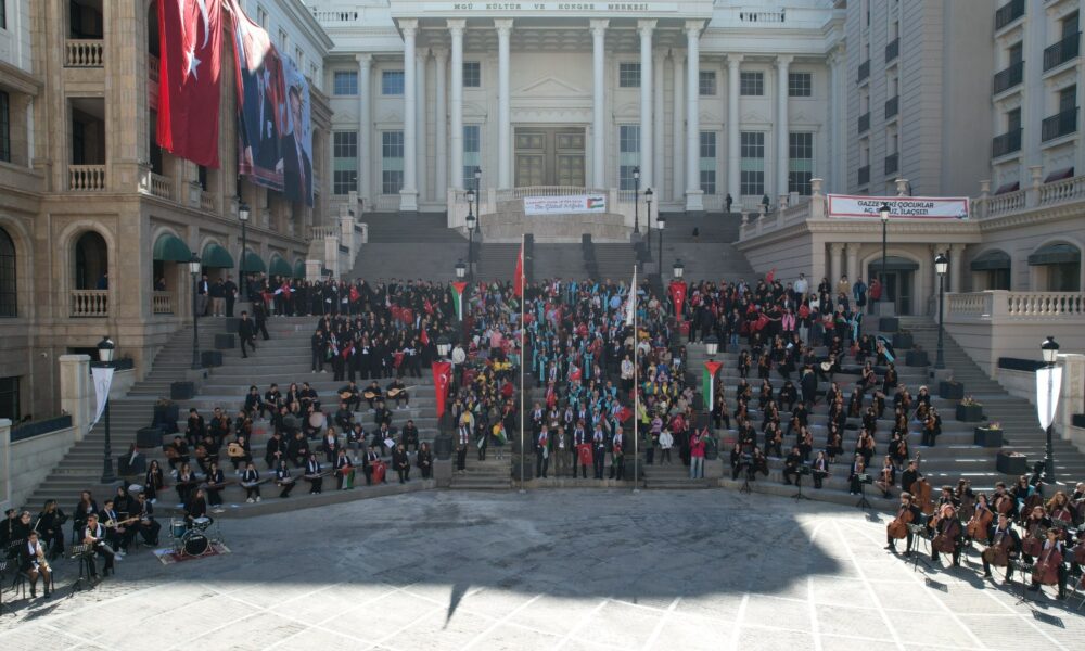 Ankara MGÜ, 2025-2026 Akademik Yılı Açılış Törenini İlk Ders Gazze temasıyla gerçekleştirdi. Törenin ardından, ellerinde Türk ve Filistin bayrakları taşıyan akademisyenler ve üniversite öğrencileri ile MGÜ Müzik İlkokulu, MGÜ Müzik Ortaokulu ve MGÜ Güzel Sanatlar Lisesi öğrencileri Yunus Emre Sevgi Meydanına geldi. Akademisyenler ve öğrencilerden yaklaşık 500 kişilik koro, sözlerini Doç. Dr. Elif Nun Gökçenin yazdığı, müziğini Fırat Akarcalının düzenlediği Can Filistin isimli şarkıyı seslendirdi.