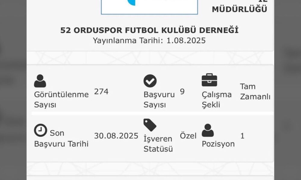 TFF 3’üncü Lig takımlarından 52 Orduspor FK, İŞKURa futbolcu ilanı verdi. İŞKURun internet sitesi üzerinden iş arama kısmına giren kişiler, 52 Ordusporun ilanıyla karşılaştı. 1 Ağustos 2025 tarihinde yayınlanan ilanın son başvuru tarihi ise 30 Ağustos 2025 olarak belirlendi. İlanı 274 kişi görüntülerken, 9 kişi başvuru yaptı. Futbolcu ilanı kısa bir süre sonra kaldırıldı. Bu durumun, geçmiş yıllarda farklı spor kulüpleri tarafından da yapılan bir uygulama olduğu, SGK teşvikinden yararlanmak adına yapılan bir işlem olabileceği belirtildi. Ayrıca benzer ilanların geçmiş yıllarda farklı kentlerde de yayınlandığı, Türk Meslekler Sözlüğünde olan tüm mesleklerde ilan açılabileceği öğrenildi. İŞKUR ve 52 Orduspor FK tarafından konuyla ilgili resmi bir açıklama yapılmadı.