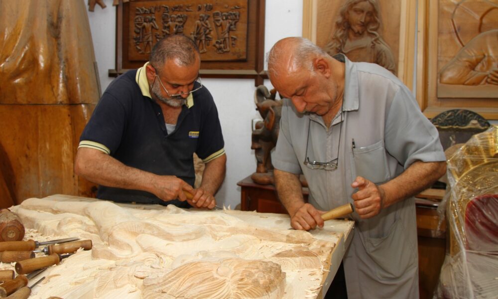 • Hatay'ın İskenderun ilçesinde 57 yıldır ahşap oymacılığı ve mobilya üretimi yapan uluslararası ödüllü sanatçı Behzat Böke (Sağda) İmalat zor, çırak yetişmiyor dedi. Fotoğraf: Ufuk AKTUĞ/İskenderun(Hatay),(DHA)