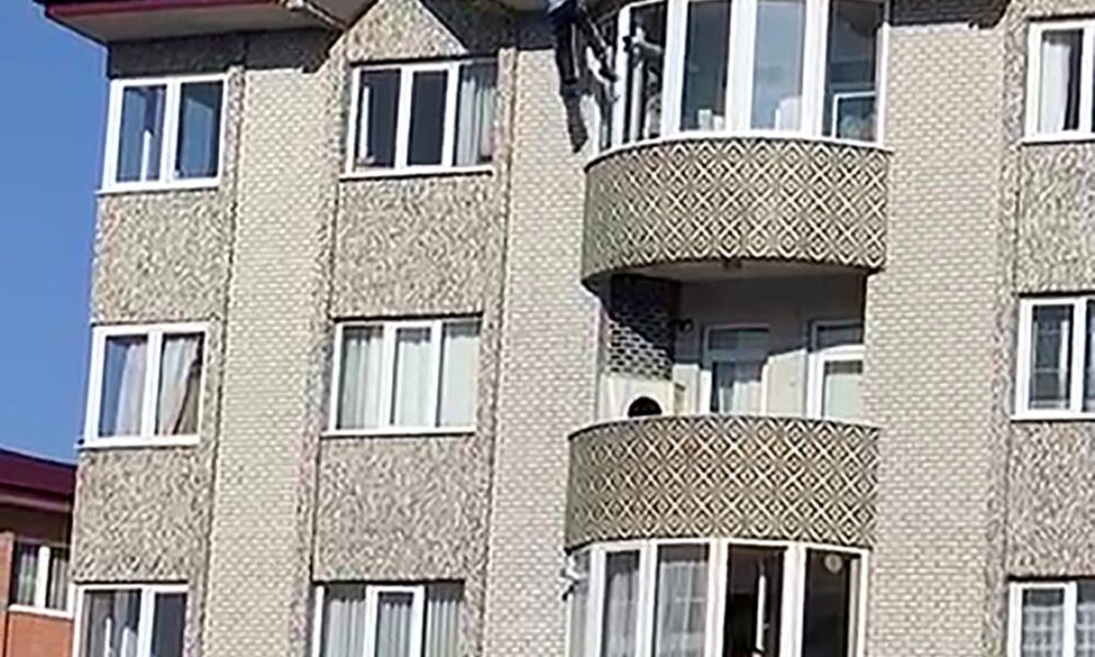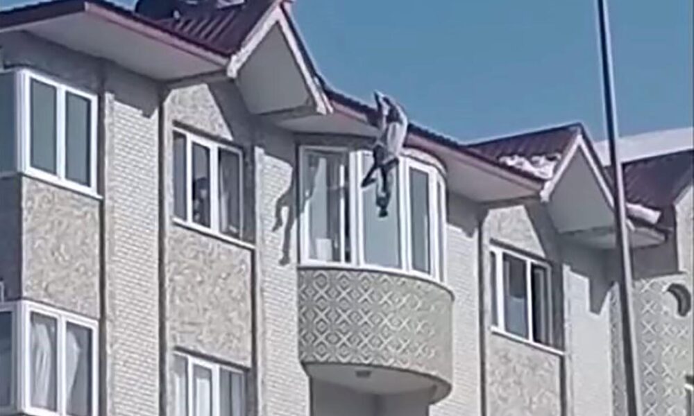 6 katlı binanın çatısından düşmekten, beline bağladığı iple kurtuldu