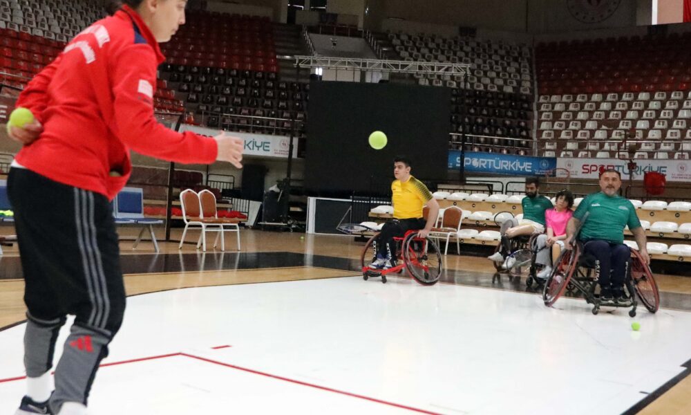 • Gaziantep’te depremde ampute olan 33 kişi tekerlekli sandalye tenis eğitimleriyle hayata tutunuyor. Fotoğraf: Nuray UZATMAZ/Gaziantep,(DHA)