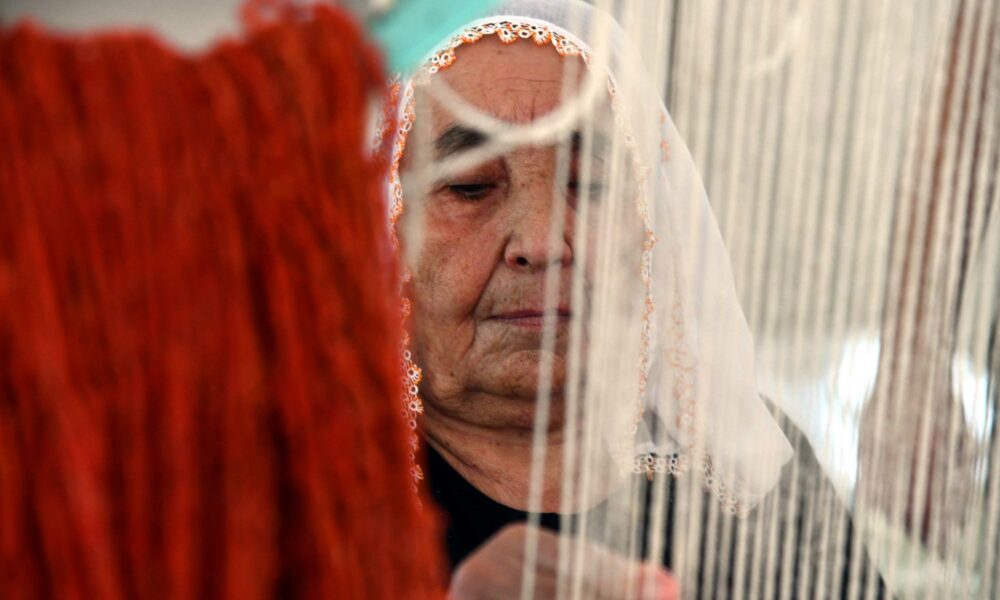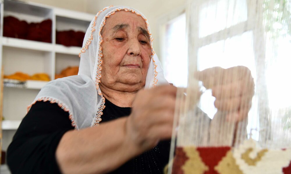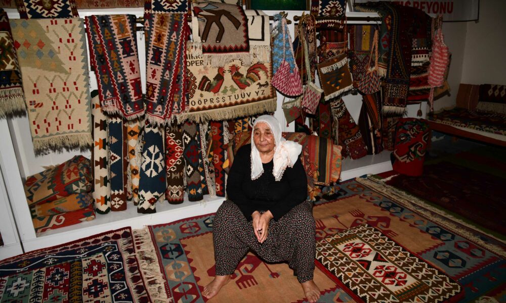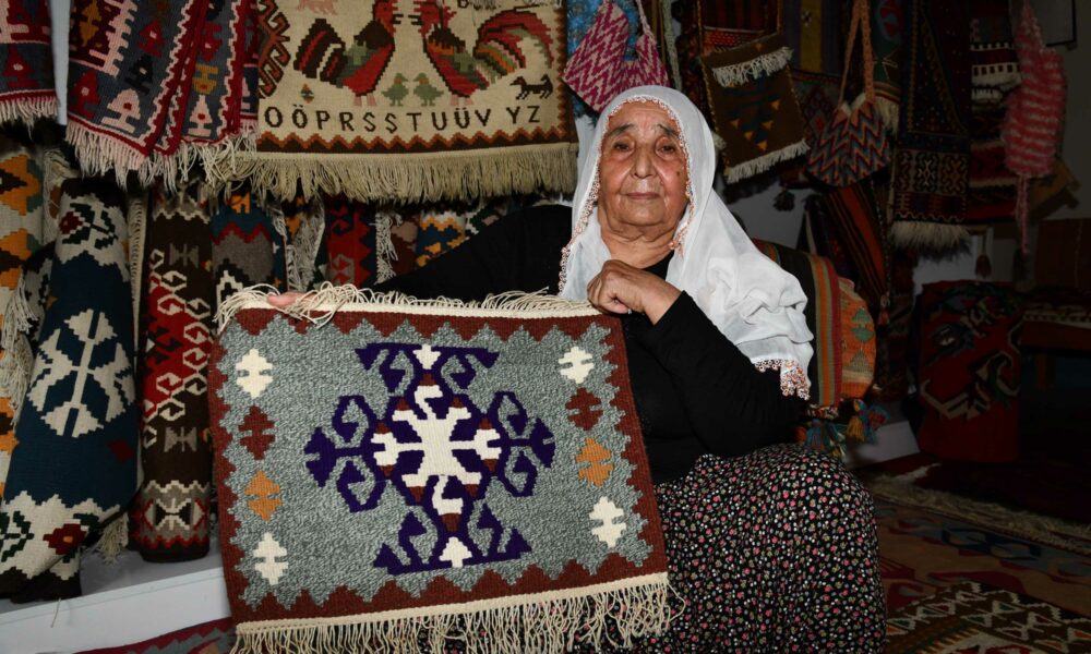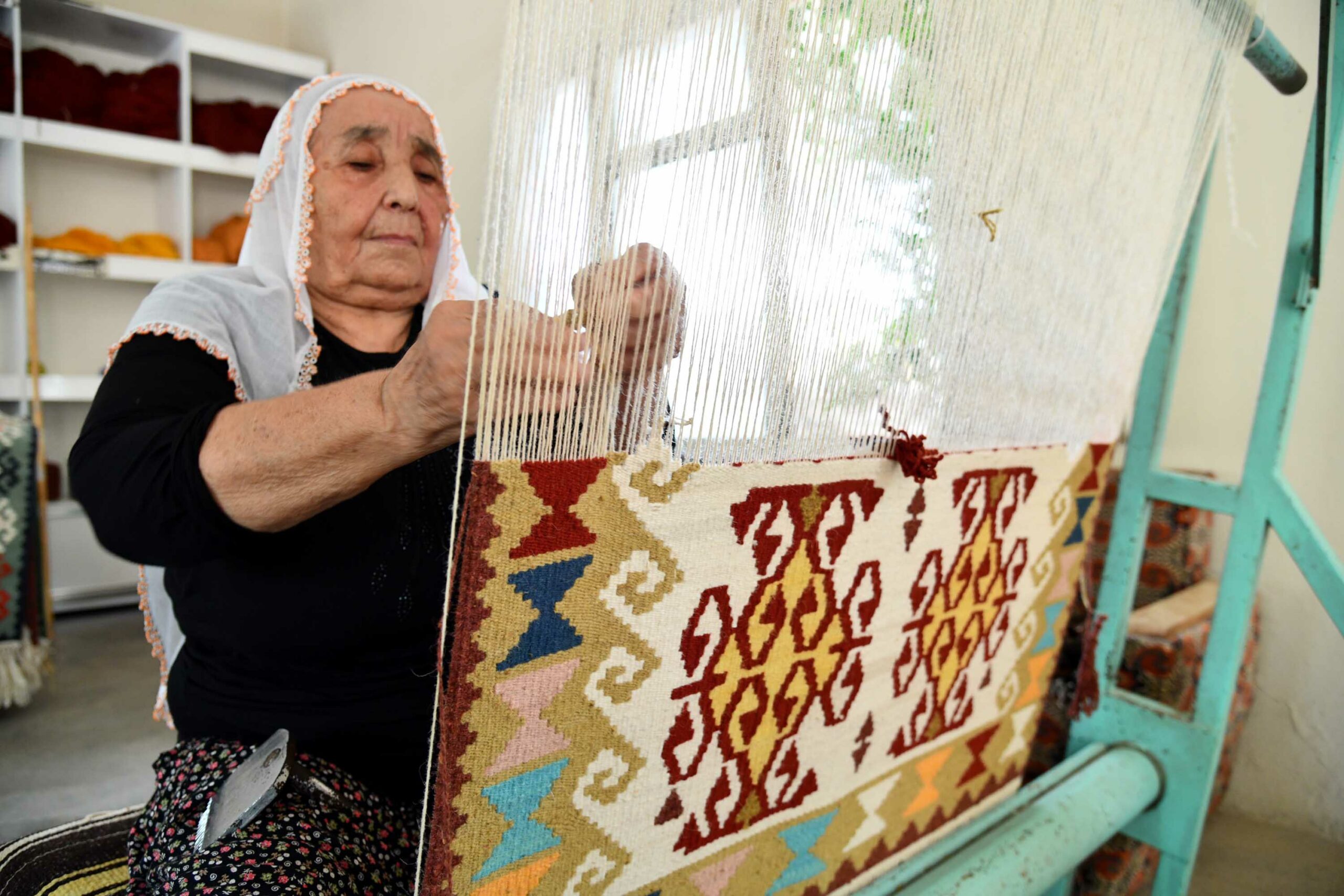 • Osmaniye'de yaşayan 73 yaşındaki Hacer Cafri, el emeği göz nuru kilim dokuma sanatını 66 yıldır sürdürüyor. Karatepe Kilim Kooperatifi başkanı Yüksel Cafri. Fotoğraf: İbrahim EMÜL/Osmaniye, (DHA)
