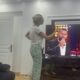 TELEVİZYONDA ÇALAN ŞARKIYA EŞLİK EDİYOR