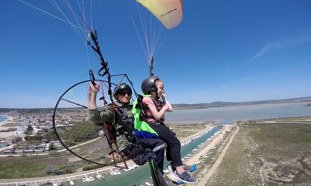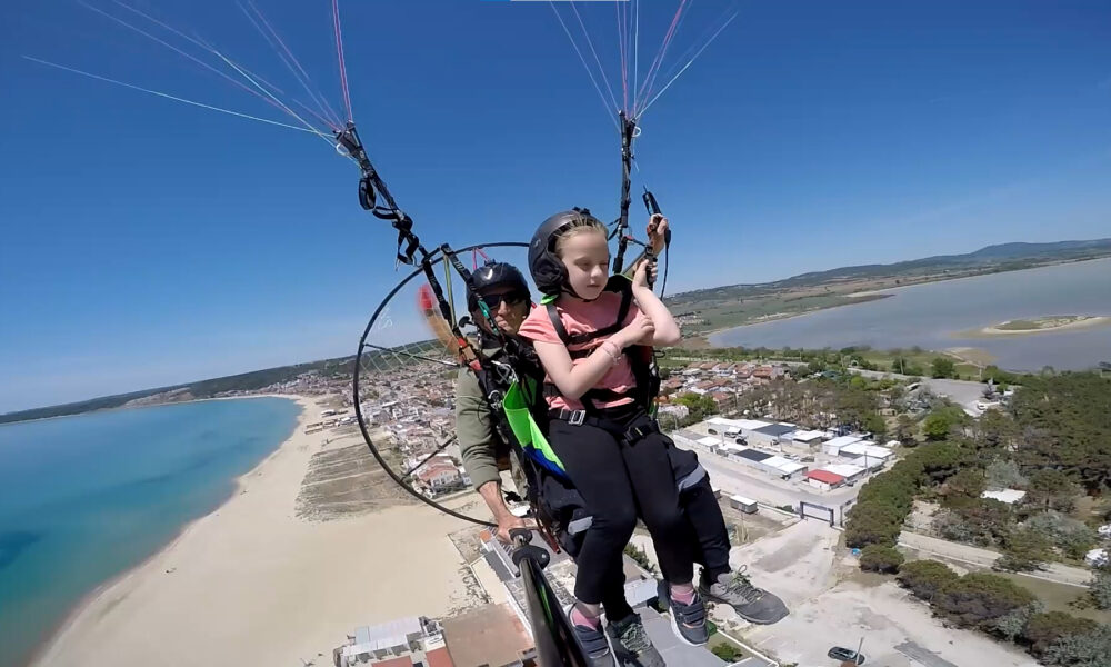 Tekirdağ’ın Çerkezköy ilçesinde yaşayan Zeynep Beren, hafta sonu tatili için dün ailesiyle birlikte Erikli köyü sahiline geldi. Beren, ailesinin de onayıyla paramotor pilotu Yılmaz Özkaya ile birlikte Saros Körfezi semalarında uçuş gerçekleştirdi. Zeynep Beren, yerden yaklaşık 200 metre yükseklikte gerçekleşen uçuş sırasında İstiklal Marşı’nın ilk 2 kıtasını ezbere okudu. O anlar, Özkaya tarafından kamerayla kaydedildi. İkili yaklaşık 30 dakika süren uçuşun ardından yere indi.