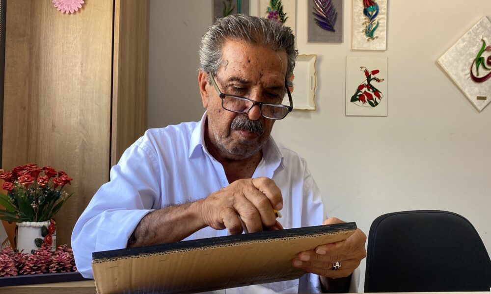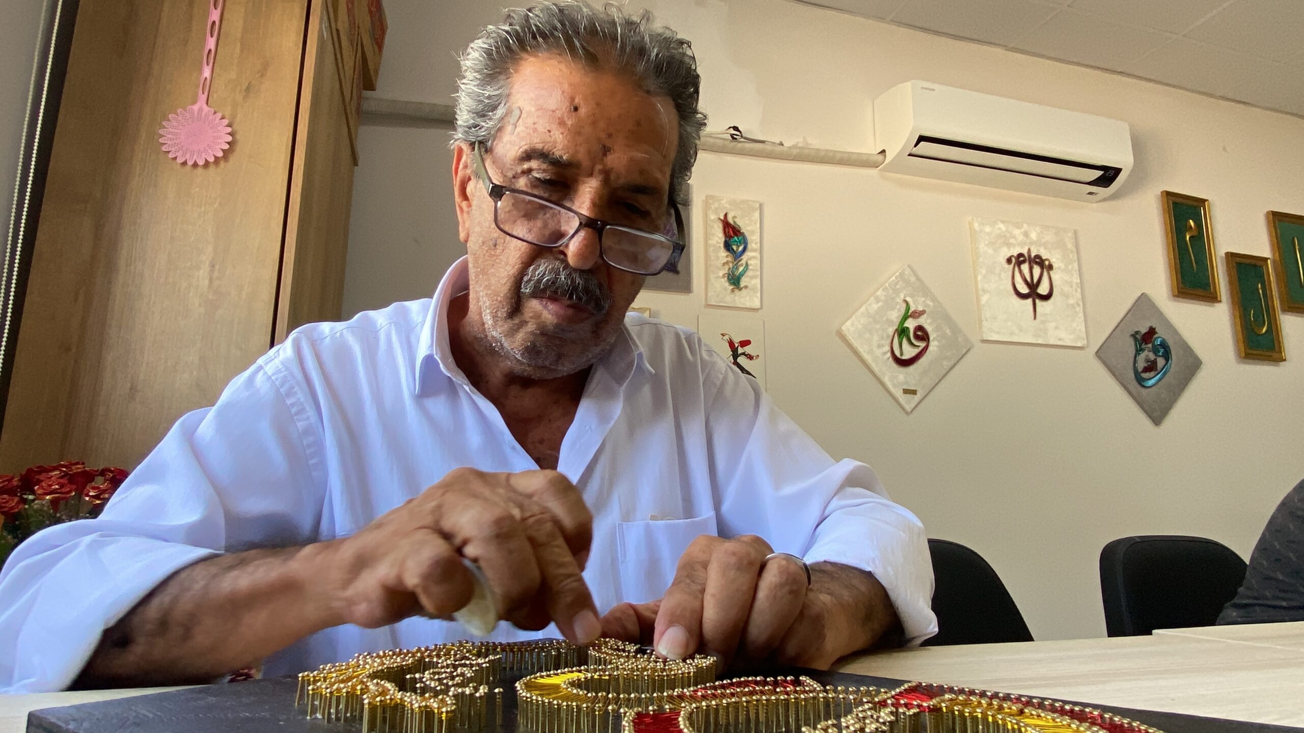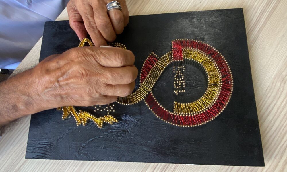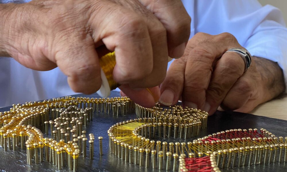 “Bu sanat, tahtaların üzerine özellikle kavak sunta üzerine dokusu yumuşak olduğu için kumaş ya da boyama yapılaraktan zemin ardından çivilerle ve tellerle oluşturulan bir sanat. Tamamen bittiğinde çerçeve de dahil olmak üzere 9-10 aşamadan oluşan çok emekli bir sanat. Çok eskilere dayanıyor. Her bir çivisine tek tek emek veriyoruz. Her bir telinde buram buram el işi kokan bir sanattır.”