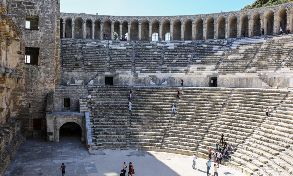 • Antalya Kent Konseyi Turizm Çalışma Grubu Başkanı Recep Yavuz, UNESCO Dünya Mirası Komitesi'nin bu yıl 26 eseri dahil ettiği Dünya Miras Listesi'ne Türkiye'den 79 aday kültürel değerden hiçbirinin alınmamasına tepki gösterdi. (Aspendos). Fotoğraf: Antalya