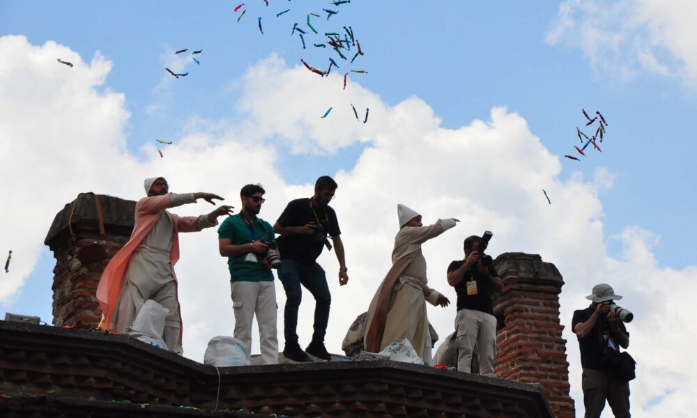 • Bu yıl 485'incisi düzenlenen Uluslararası Manisa Mesir Macunu Festivali, 8 ton mesir macunu saçılmasıyla sona erdi.Fotoğraf:Seza Nur ALPDÜNDAR/Manisa,(DHA)