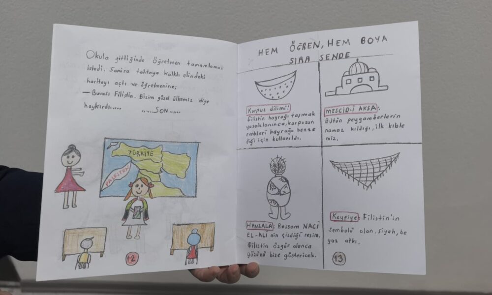Aslıhan Karakurt, “Ben bu kitabı Filistin için yazdım. Bu benim ikinci kitabım. Hikayemde, savaş nedeniyle başka bir yere taşınmak zorunda kalan bir çocuğun, okulda Filistini anlatmasını konu aldım. Kitabımı fuarda satışa sunuyorum. Hepinizi bekliyorum, sattıktan sonra parasını Filistine göndereceğim” diye konuştu.