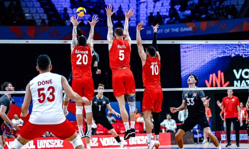 Tarihinde ilk kez Milletler Ligi’nde mücadele eden A Milli Erkek Voleybol Takımı, Antalya etabındaki ilk maçında Kanadaya 3-1 mağlup oldu. Karşılaşmayı TVF Başkanı Mehmet Akif Üstündağ, CEV Başkanı Aleksandar Boricic, Antalya Valisi Hulusi Şahin ve Antalya Gençlik ve Spor İl Müdürü Yavuz Gürhan da izledi.