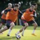 A Milli Takım’ın bugünkü çalışmasına, Ümit Milli Takım aday kadrosunda bulunan oyunculardan Bertuğ Yıldırım ve Enis Destan da katıldı. Sahadaki antrenmanın başında bugün doğum günü olan Cenk Tosun için takım arkadaşları ve teknik heyetin katıldığı neşeli bir kutlama yapıldı.