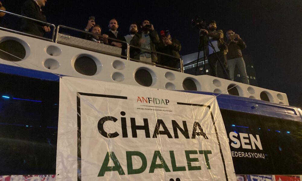 Ankara Filistin Dayanışma Platformu (ANFİDAP), Gazze’ye yardım götüren Sumud Filosuna İsrail güçlerinin saldırmasının ardından ABD Büyükelçiliği önünde eylem gerçekleştirdi. Protestoya, saldırıya tepki gösteren çok sayıda vatandaş katıldı. Eylemde vatandaşlar, Filistin bayrakları ile Filistin’e destek amaçlı ve İsrail karşıtı hazırlanan pankartlar taşıdı. Sumud Filosuna destek amaçlı sloganlar atıldı.
