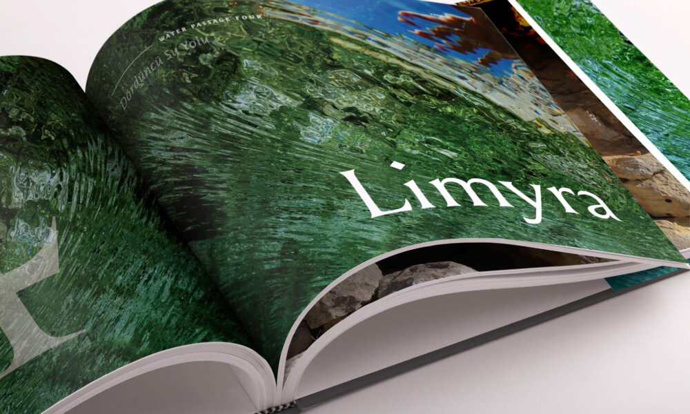 Kitabın su yolu rotaları Kaş, Elmalı, Finike, Tekkeköy, Arycanda, Zemuri (Lymra), Yanartaş, İslamlar, Patara, İnpınar, Xanthos, Letoon, Pınara, Pydnai, Sura, Aperlae, Andriake, Demre, Dereağzı, Hıdırellez Mağarası, Saklıkent, Tlos, Finike, Kırkgözden oluşuyor. Kitapta yer alan kaynak ve nehirler, Antalya, Köprüçay ve baraj suları altında kalan Ispartadaki Darıbükü köyünden geçiyor. Bu rotalar, suya tanrısal özellikler atfedilen zamanlardan, suyun aziz bilindiği zamanlara coğrafyanın ve kültürün izlerini barındırırken, içinden geçtiğimiz suya yas tutulan zamanların tanıklığını da yapıyor. Kitapta ayrıca, yer altı su yollarını ve antik kaynakları takip eden bu ziyaretlerden alınan ilhamla üretilmiş Margaret Ross Tolbertin resimleri, Aidan Kochun illüstrasyonları, Neriman Polatın fotoğrafları, Anna Lowdinin heykeli, Jarrod Ryhalın fotoğrafları ve katkıda bulunanların bölgede ürettiği yüzlerce çizim de yer alıyor.