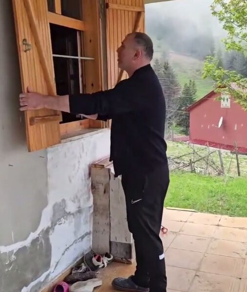 Ayıların evi talan ettiğini fark eden Başkan Çebinin akrabalarından Yalçın Çebi, “Coşkun Başkanın evine girmiş. Buraları söküp, yıkmış. Ayı kardeşlere torpil de işlemiyor. Pencereden içeri girmiş, buraları yıkmış. Ayı da işini biliyor. Yazın onlara et atıyorum diye benim evime girmediler” dedi.