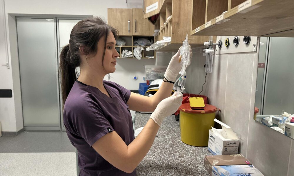 • Aydın'da görev yapan hemşire Rümeysa Taşova, (Fotoğrafta) acil yoğun bakım servisinde hastalara hizmet verirken, tatil günlerinde aile çiftliğindeki hayvanların bakımı ile ilgileniyor. Fotoğraf: Seza Nur ALPDÜNDAR/İzmir,(DHA)