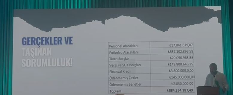 Adana Demirspor kulübünün toplam borcunun 884 milyon 354 bin lira olduğunu açıklayan Kandemir şöyle konuştu:
