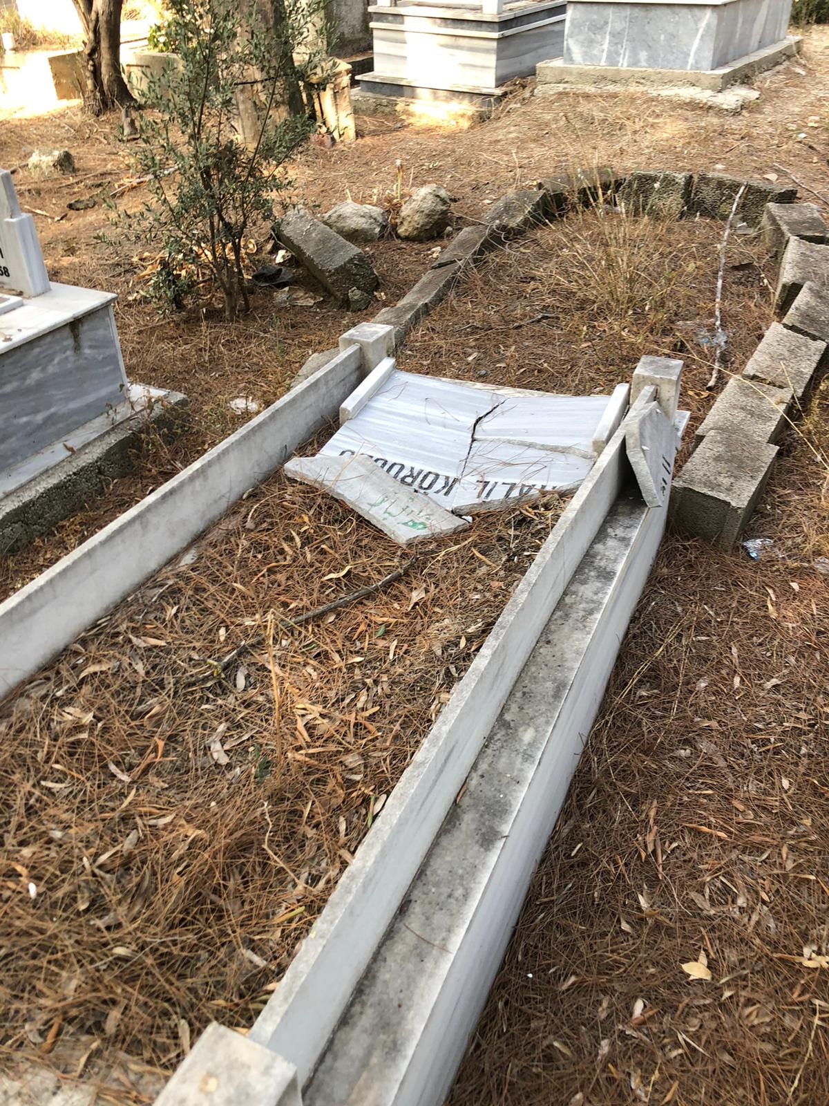 Aslanlı Mahallesi Tırmıl Mezarlığına sabah saatlerinde gelenler, mezar taşlarının kırıldığını fark edip, durumu jandarma ekiplerine bildirdi. Yapılan incelemede 20 mezarın taşlarının kırıldığı saptandı. Jandarma ekipleri, olayla ilgili inceleme başlatırken, bölge halkı ise tepki gösterdi. Bazı kişiler, mezarların tahrip edilmesinin saygısızlık olduğunu belirterek, “Bu büyük bir vicdansızlık. Bunları yapanların derhal bulunup cezalandırılmasını istiyoruz” dedi.