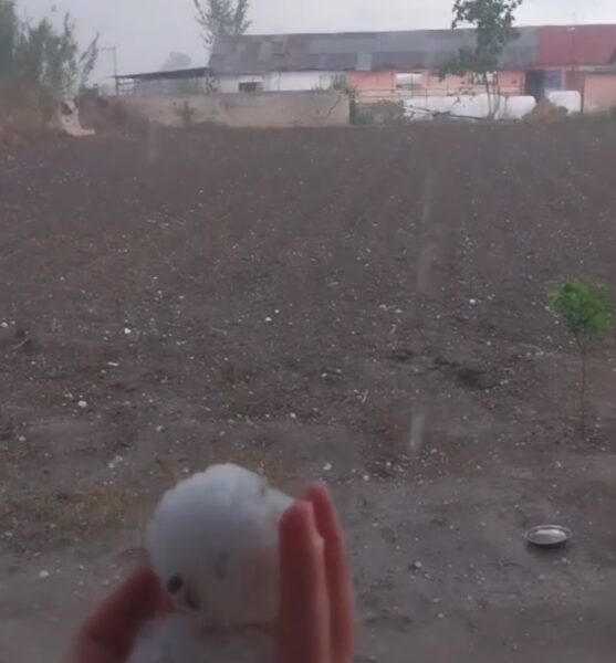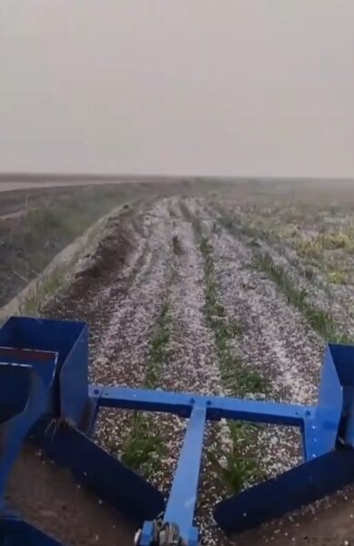 • Ceyhan ilçesinde etkili olan dolu yağışı tarım arazilerine zarar verdi. Fotoğraf: Adana,(DHA)