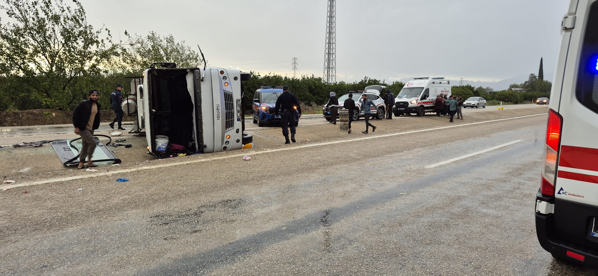 Kaza, saat 17.00 sıralarında İmamoğlu-Kozan kara yolu Çukurören mevkisinde meydana geldi. Mandalina hasadına giden tarım işçilerini taşıyan Suriye uyruklu Celal Y. yönetimindeki 01 MC 4875 plakalı servis midibüsü, kontrolden çıkarak devrildi. Kazada araçta bulunan 1i çocuk, 11 kişi yaralandı. İhbar üzerine kaza yerine sağlık ve jandarma ekipleri sevk edildi. Yaralılar, çevredeki vatandaşların da yardımıyla özel araçlar ve ambulanslarla Kozan Devlet Hastanesi’ne kaldırılarak tedavi altına alındı. Yaralıların hayati tehlikesinin bulunmadığı belirtildi.