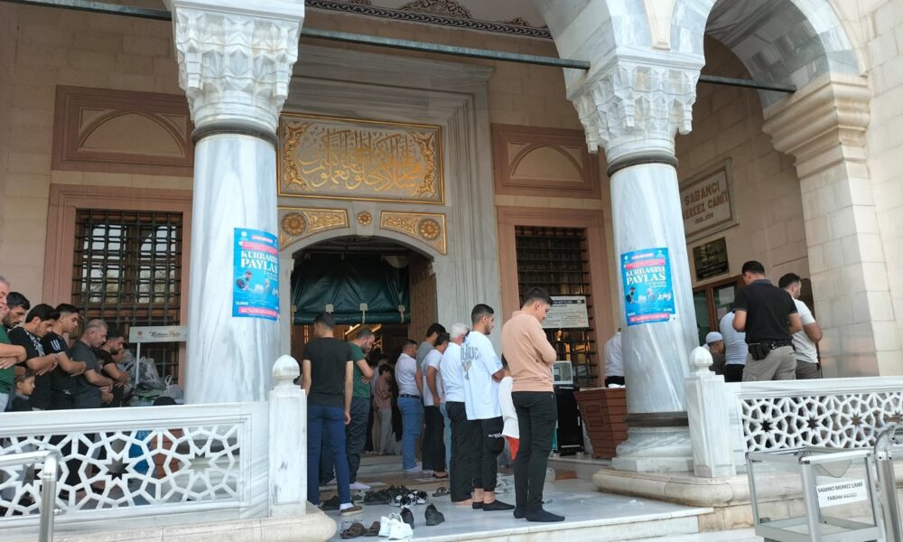 Adanada binlerce kişi, sabahın erken saatinde Kurban Bayramı namazı için Seyhan Nehri kıyısındaki Sabancı Merkez Camiine geldi. Kapalı alanı 20 bin kişilik olan cami, Kurban Bayramı namazı için gelen vatandaşlarca tamamen dolduruldu. İçeriye giremeyenler ise caminin açık alanı olan avlusunda yere serilen hasırların üzerinde saf tuttu. Vatandaşlar, dinledikleri vaazın ardından bayram namazını kıldı.