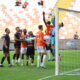 14üncü dakikada Adanaspor’da Diakite ceza sahası yayının içinden sağ ayağıyla çok sert vurdu ancak meşin yuvarlak üst direğe çarpıp kaleci Zafer’in önüne düştü.